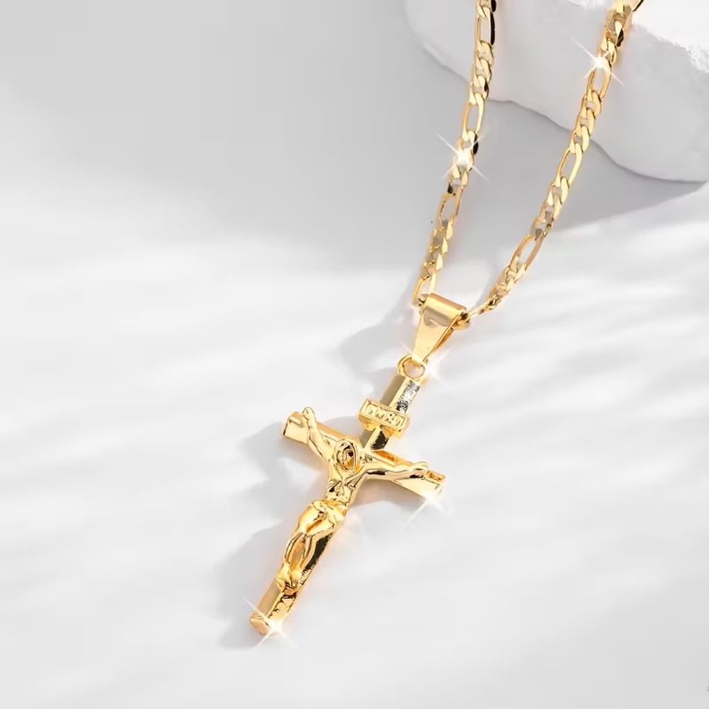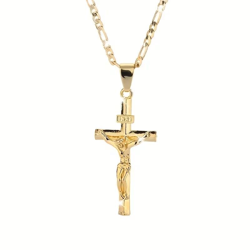 14K Gold-Plated Jesus Cross Pendant Necklace