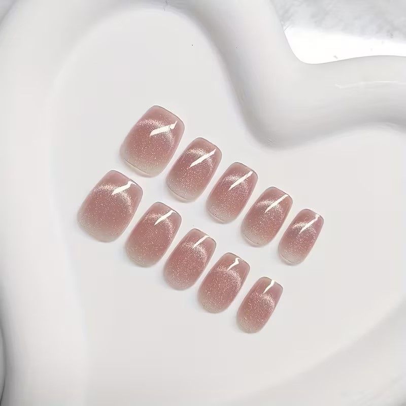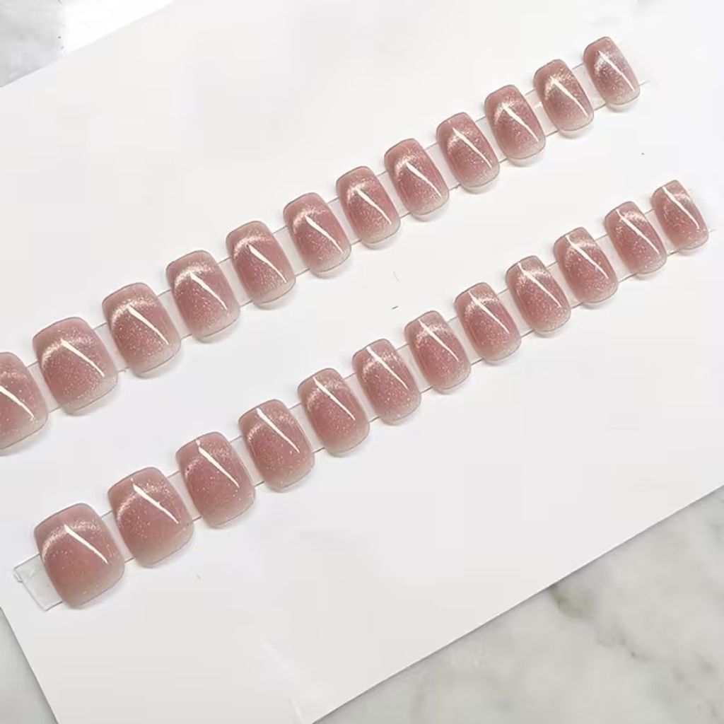 A Set of Women'S 24 Short French Elegant Simple Gentle Nail Smile Cat'S Eye Nail Stickers Joker SPAR Cat'S Eye Nail Cream Yellow Suitable for Music Festival Dating to Send Girlfriends Gifts Mother Wearing Family Holiday Gifts (Opp Bag).